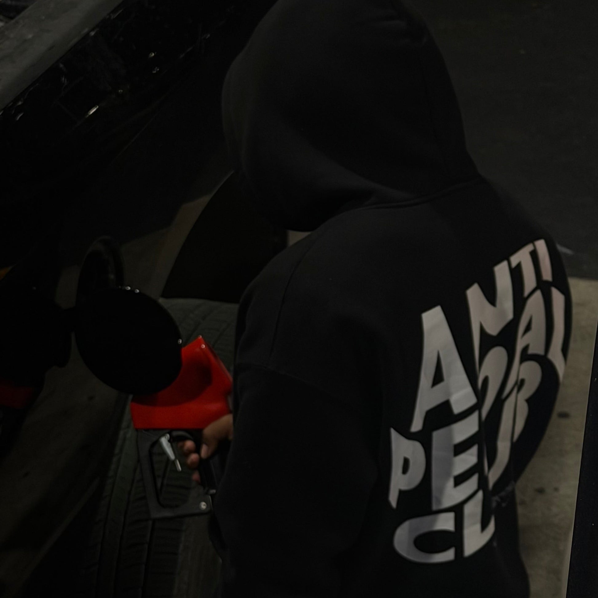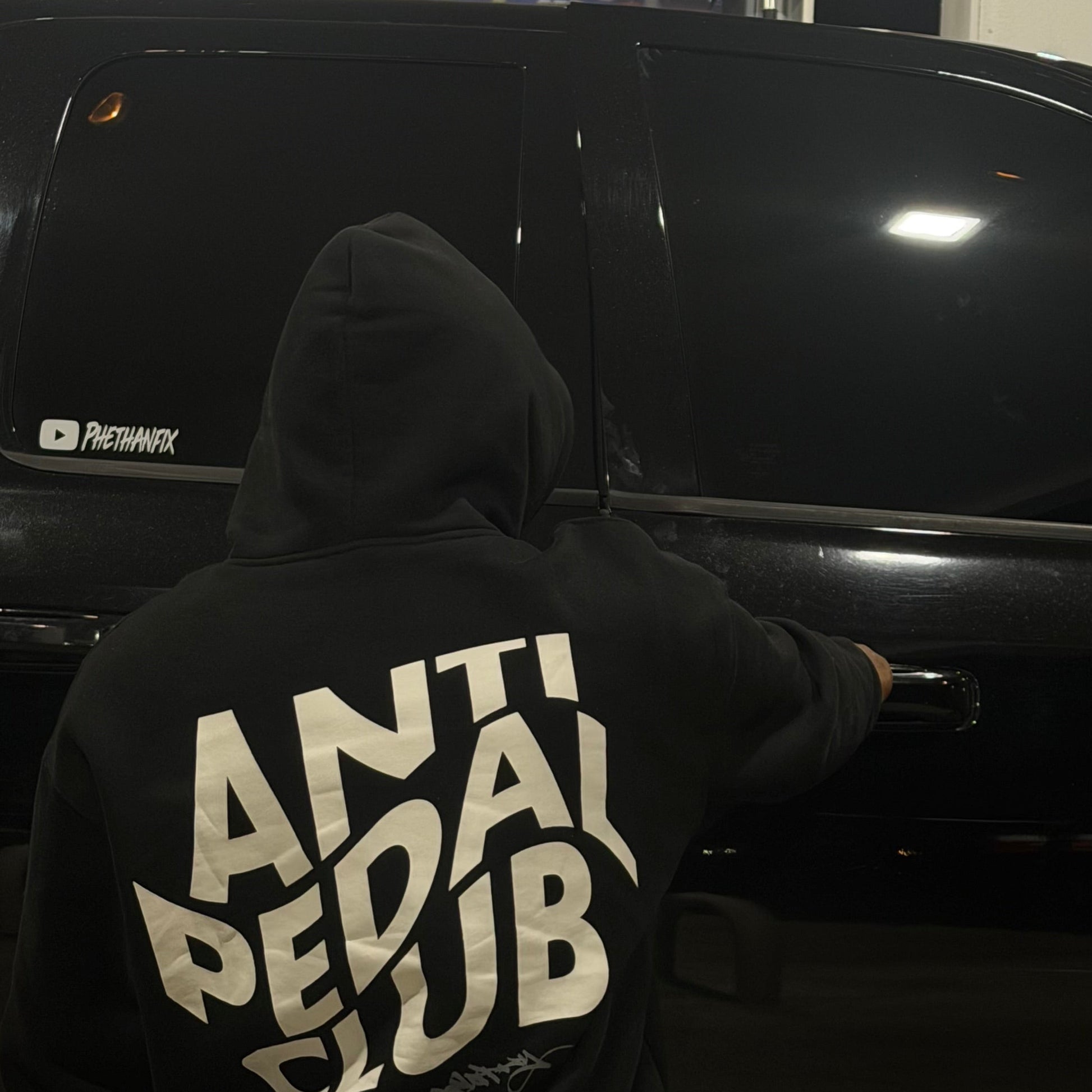 Jet Black Hoodie With 'Anti Pedal Club' on front and back.